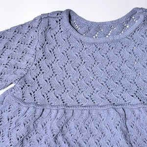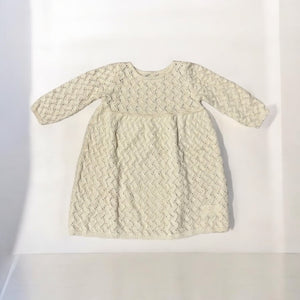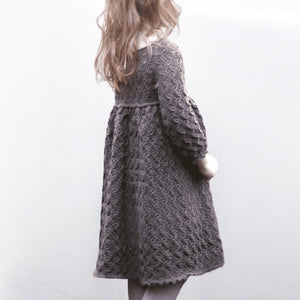 お子様にぴったりの「デザインケーブルニットワンピース」で温もりをプラスしましょう。優しいラベンダーとアイボリーの2色展開です。