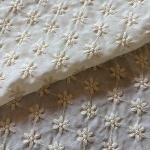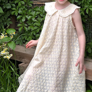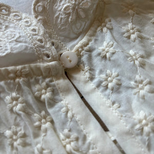 全体に施された小花刺繍と、スカラップレースの大きめ襟が、特別感のある一枚です。