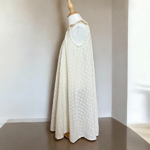 上品な生成りカラーと、ふんわり広がるスッキリシルエットが印象的なノースリーブワンピース。