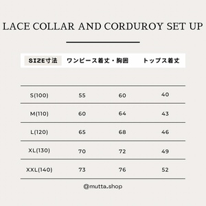 秋冬にぴったりなコーデュロイ素材のワンピースと、繊細なレース襟と淡いベージュカラーが愛らしいトップスのセットアップアイテム。